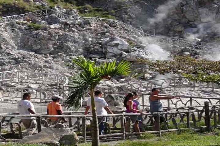 We'll descend to Las Hornillas Volcano, where we can witness the natural geysers in action. Here, you can choose your own adventure: travel this section on horseback or take a carriage, depending on your energy level. in natural hot springs and mud baths